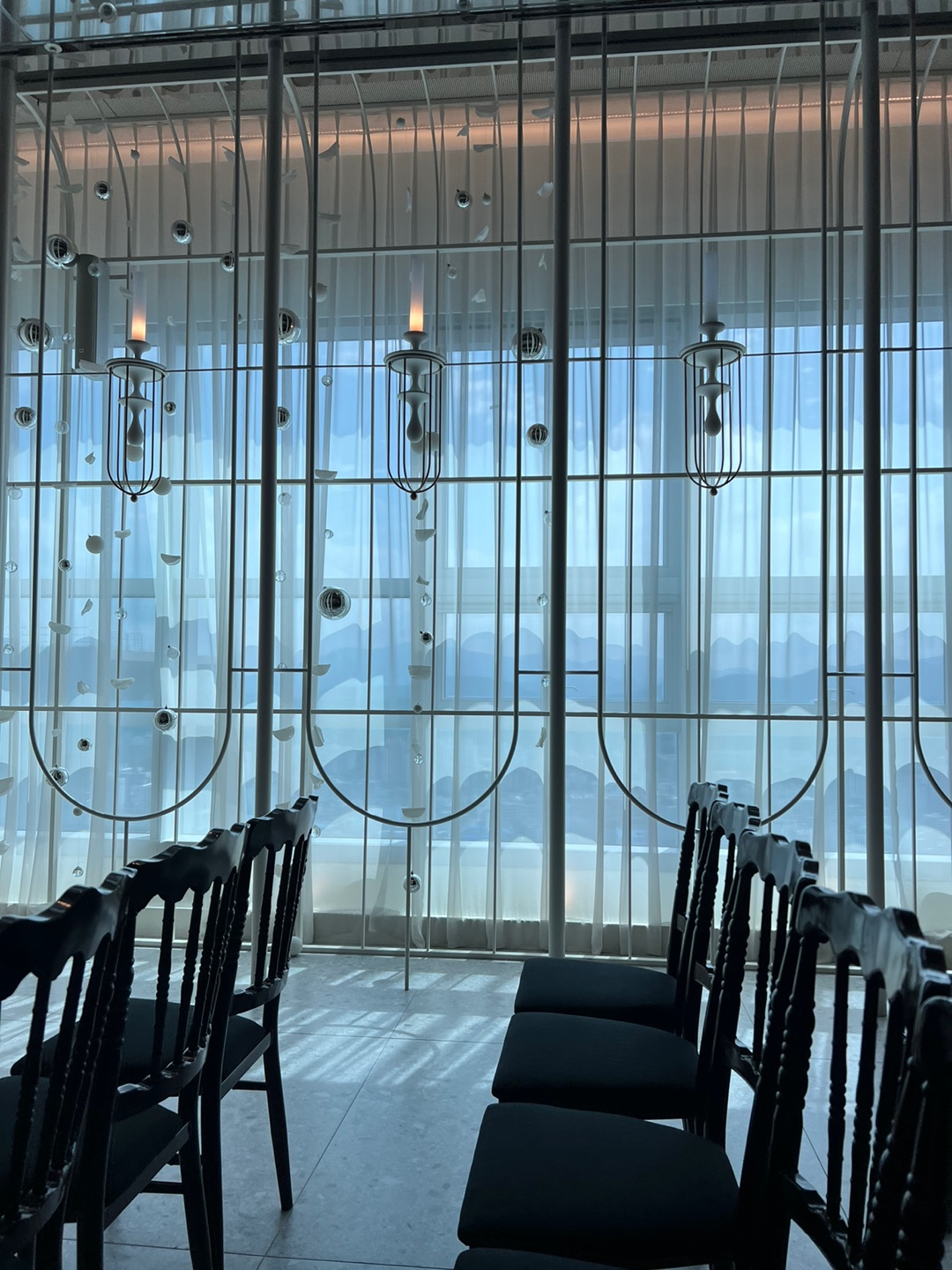 그리고 새로웠던 것은 홀 전면에 보이는 장식이었습니다. 햇빛이 들어오는데 밝게 빛이 나서 더 좋았습니다.