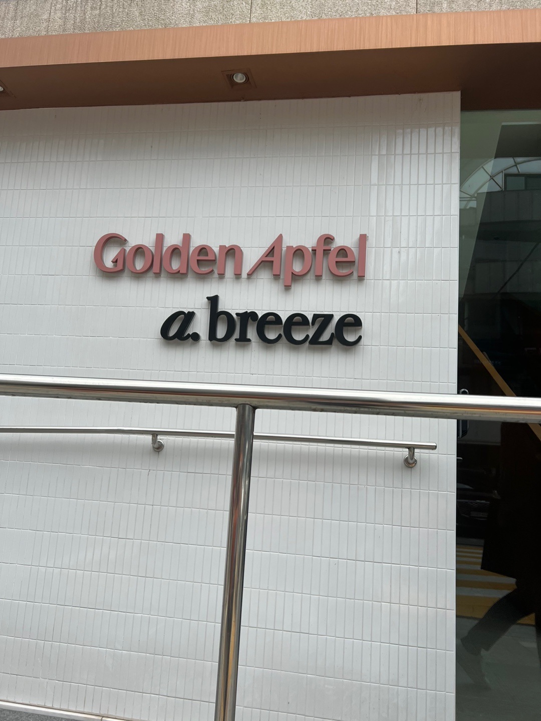입구에 골든 아펠이라고 적혀 잇고 자사 웨딩드레스 샾인 에이 브리즈가 있습니다.