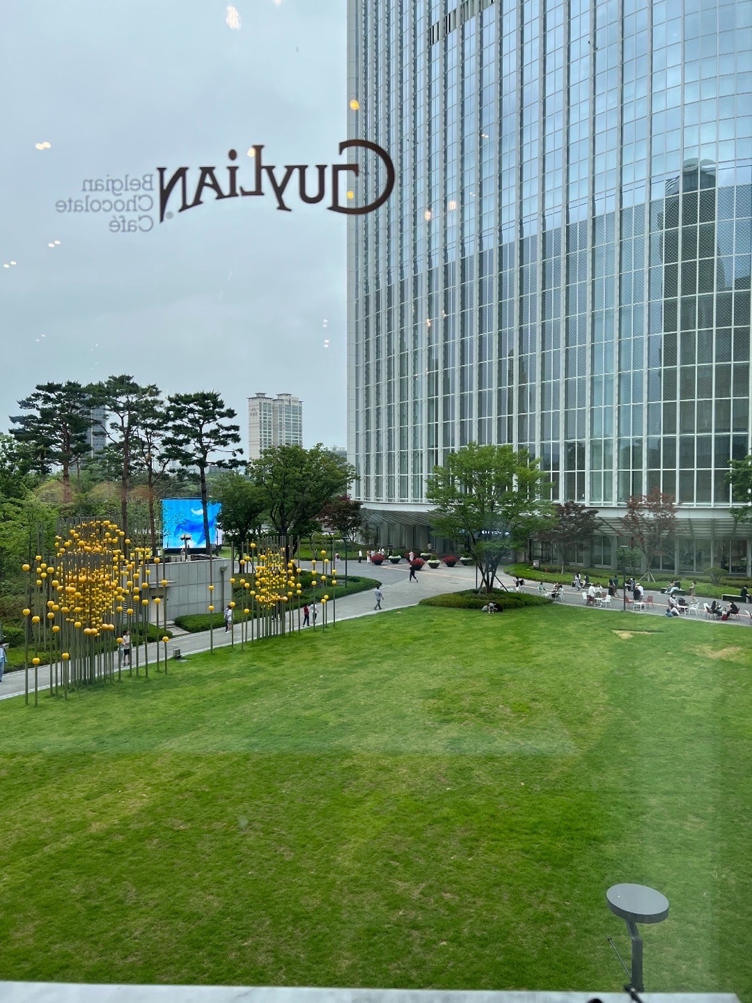 오랜만에 남자 친구와 잠실의 롯데월드 몰에 데이트를 나왔습니다. 잠실은 저희가 정말 애정 하는 데이트 장소인데 이유는 카페 식당 놀거리가 다 있어서 비 오는 날은 이 공간에서 벗어날 필요가 없다는 것입니다. 사실 여기는 초콜릿 카페여서 초콜릿을 먹거나 초콜릿 음료를 마시러 오는 곳인데 저희는 날씨가 쌀쌀하고 단것은 별로 당기지가 않아서 차를 주문했습니다. 오빠는 얼그레이를 주문하고 저는 녹차를 주문했습니다. 여기는 특이했던 것이 컵모양입니다. 무슨 동그라한 항아리 같은 컵에 차가 나왔습니다. 그래서 오빠와 웃으면서 이야기했던 기억이 납니다. 여기는 밖의 풍경을 보면ㅁ 음료나 차를 마실 수 있다는 장점이 있는 것 같습니다. 앞의 잔디광장에서 아이들이 뛰어노는 것이 보였고 여유로운 풍경에 나도 모르게 바빴던 마음들이 풀리는 것을 느끼게 됩니다.