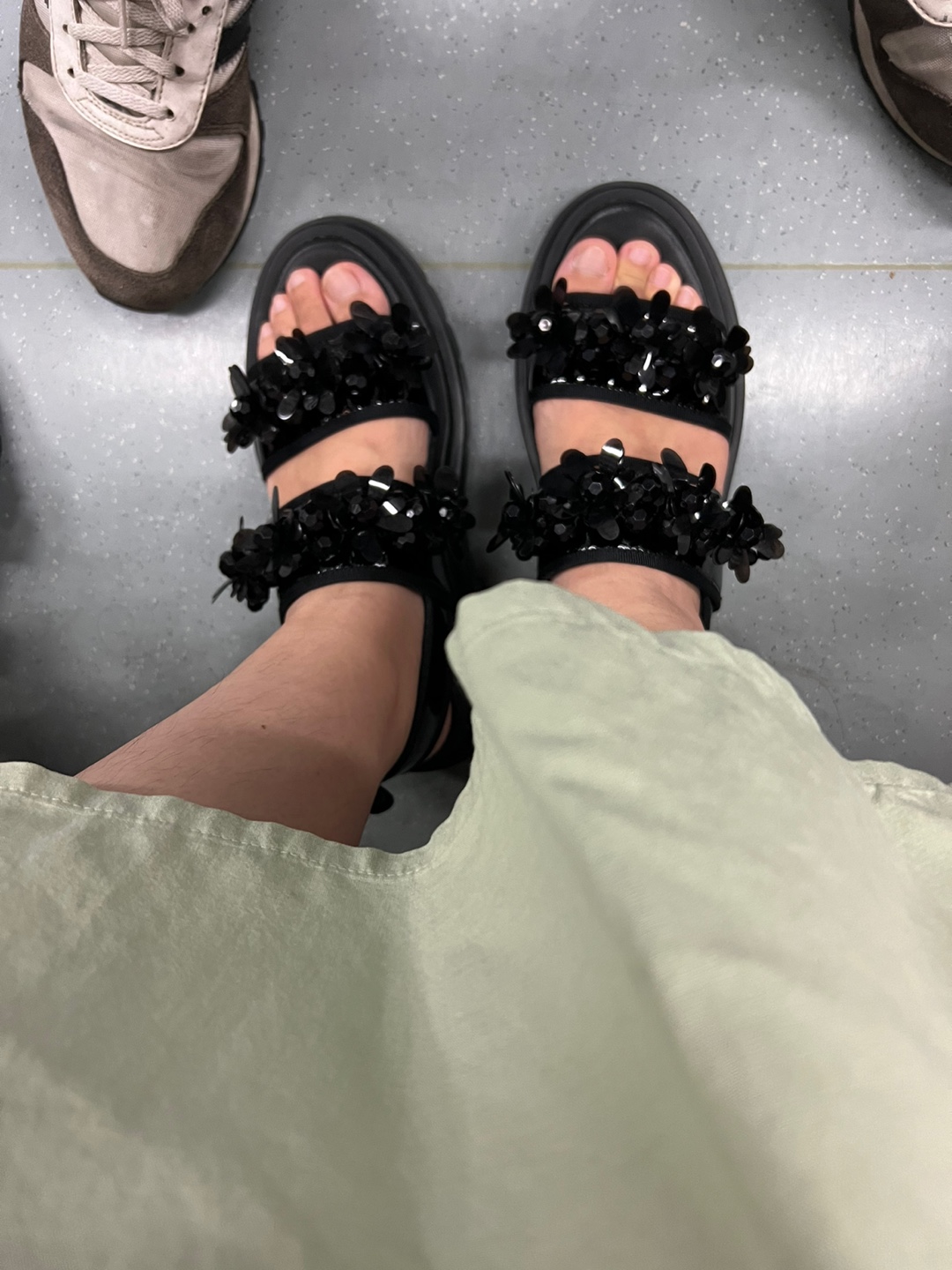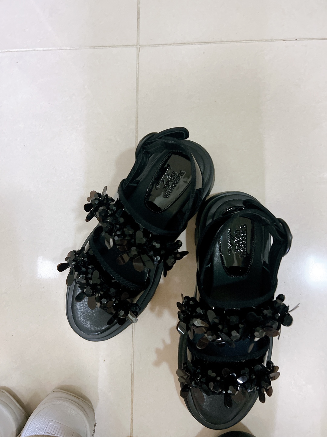 슈 콤보 보니에서 샌들 쇼핑을 했습니다. 하얀색이랑 고민했는데 검은색이 좀 더 슈 콤보 보니에의 디자인 같아서 검은색으로 구입했습니다.