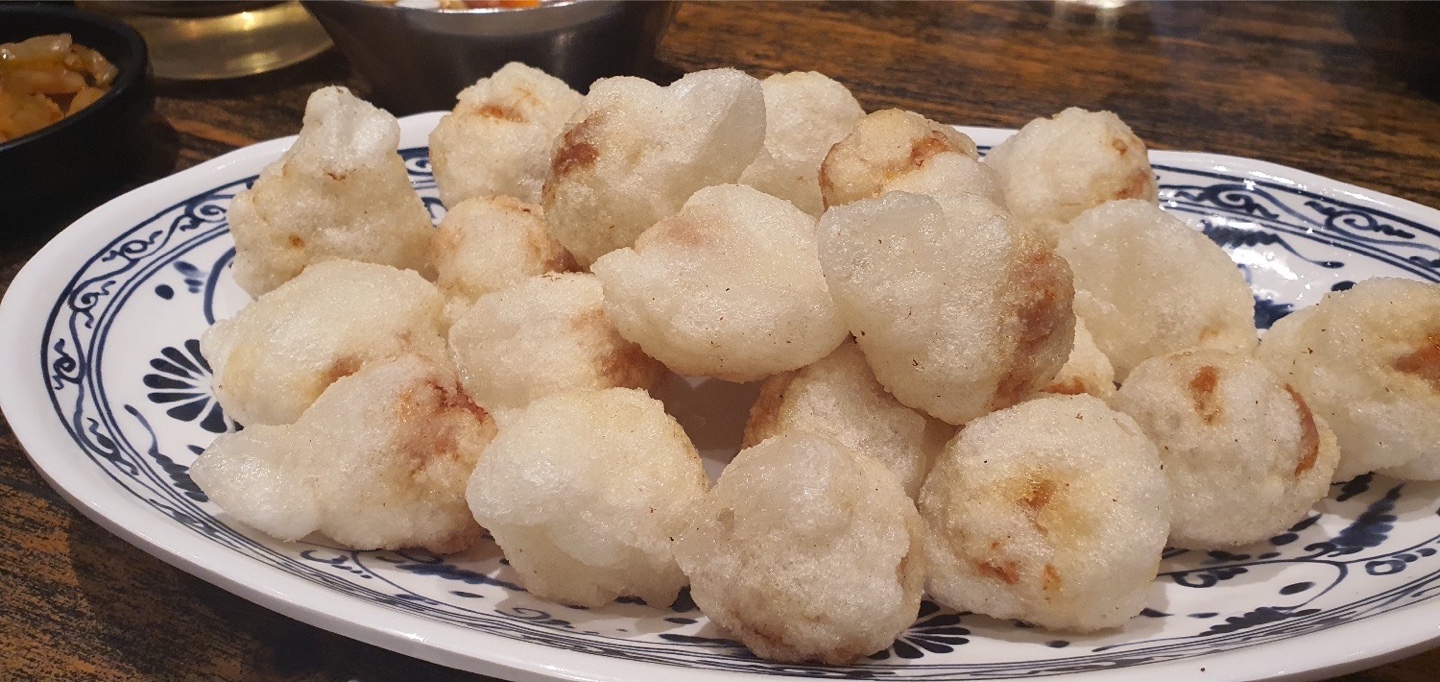이 탕수육은 특이한게 동그랗게 생겼습니다.
