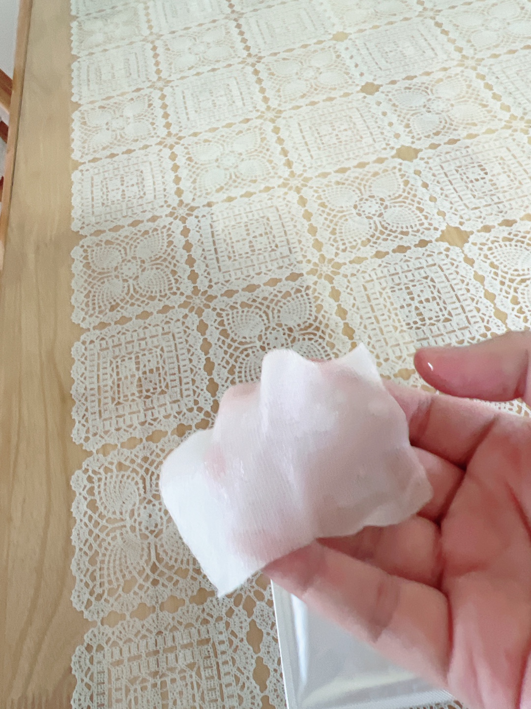 팩을 열어서 양볼에 붙여보았는데 얇으면서 구멍이 뚫려있어서 영영 양분이 볼에 더 잘 스며드는 느낌이었습니다.