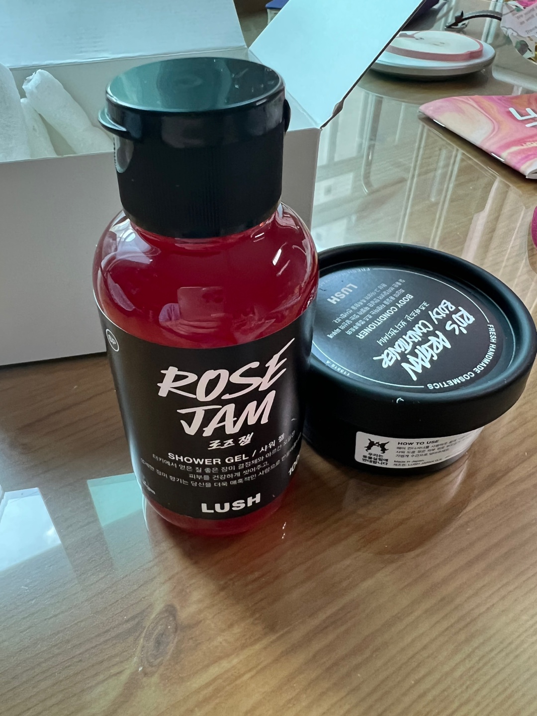 러시 로즈 잼 샤워젤과 보디 컨디셔너입니다.