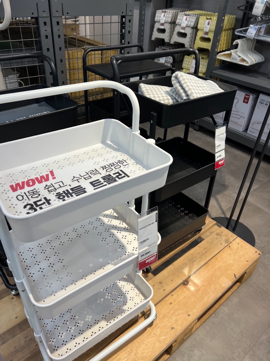 이케아에서만 보던 트롤리를 모던하우스에서도 발견했습니다. 29,900원의 저렴한 가격이었고 이동이 쉬워서 집에 하나 정도 가지고 있으면 좋을 거라는 생각이 들었습니다.