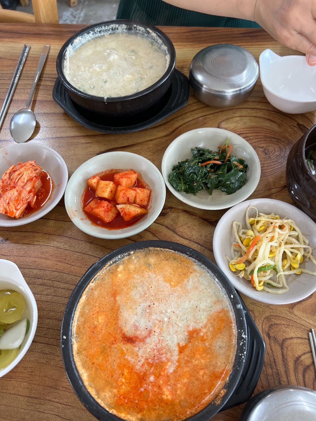 저와 엄마는 그냥 손두부 하나 그리고 얼큰한 손두부 하나를 주문했습니다. 일단 사람들이 너무 많아서 어느정도의 웨이팅은 생각하고 가야 할 것 같습니다. 저희는 마침 딱 한자리가 비어서 바로 입장했습니다. 식당 옆에느 ㄴ두부 공장이 있어서 바로 두부를 만들고 있었습니다. 두부는 그냥 너무 말이 필요 없을 정도로 맛있는 맛입니다. 그리고 기본 반찬들이 나오는데 정갈해서 손부두와 함께 먹으니 너무 좋았습니다. 얼큰 손두부는 그렇게 매운 편은 아니어서 좋았습니다. 그냥 개운한 정도여서 매운 것을 잘 못 먹는 저도 다 먹었습니다.
