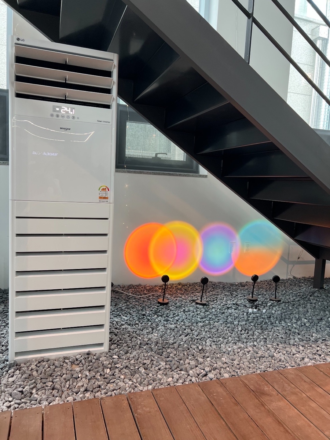 요즘 유행하는 조명도 보입니다. 일단은 너무 넓어서 좋고 공간 자체가 조용하고 위에 테라스가 있는 점도 좋습니다.