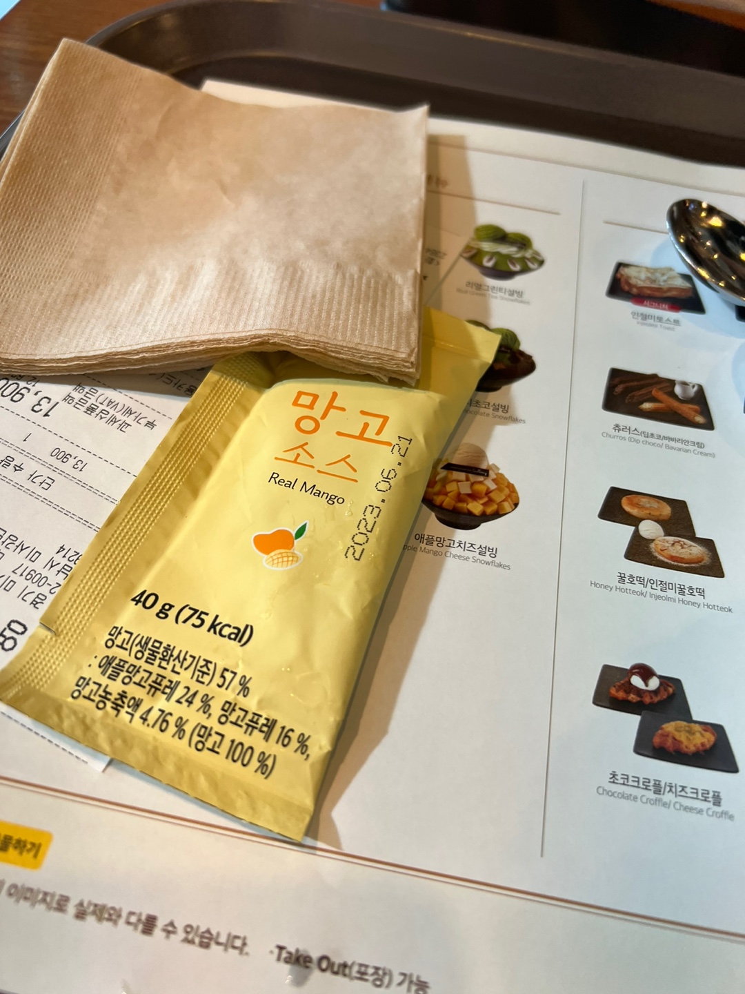 참고로 이 소스를 뿌려먹으면 진짜 맛이 있습니다. 뿌려먹으면 너무 달아서 맛이 없지 않을까 고민을 했는데 망고 퓌레를 뿌려먹는 것은 좋은 선택이었습니다.
