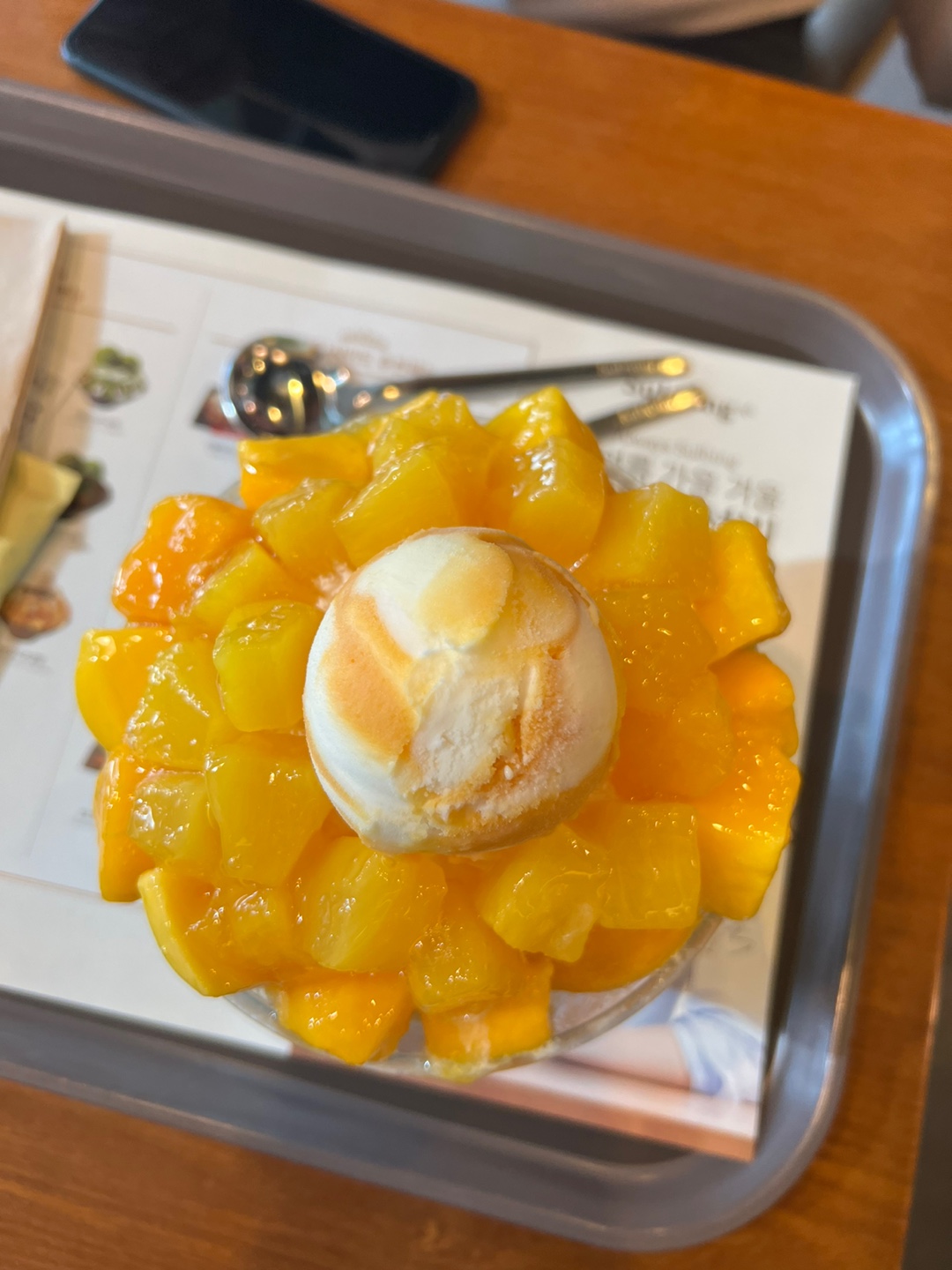 새로운 메뉴를 먹으면 좋을 것 같아서 아임 파인 망고빙수를 먹었습니다.