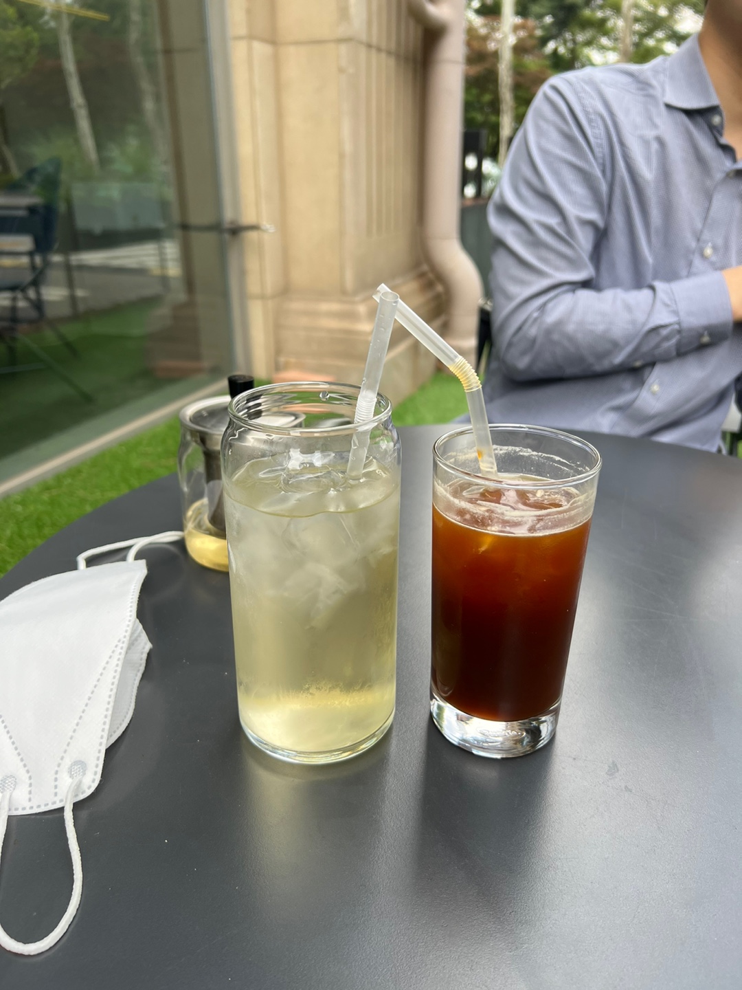 그리고 메뉴는 아이스아메리카노와 레몬티를 주문했습니다. 요즘은 몸에 건강한 것을 먹자는 생각이 들어서 최대한 차를 위주로 먹으려고 합니다. 레몬티는 우리가 흔히 생각하는 맛은 아니었고 레몬그라스 정도로 생각하면 좋을 것 같습니다. 은은하게 레몬의 향이 나서 너무 좋았습니다. 그리고 수다를 떨다가 배가 고파서 티라미수크로플을 시켰는데 크로플 위에 올라가 있는 크림이 그냥 생크림이 아니라 크림치즈여서 꾸덕하고 너무 맛있어서 계속 집어먹었습니다.