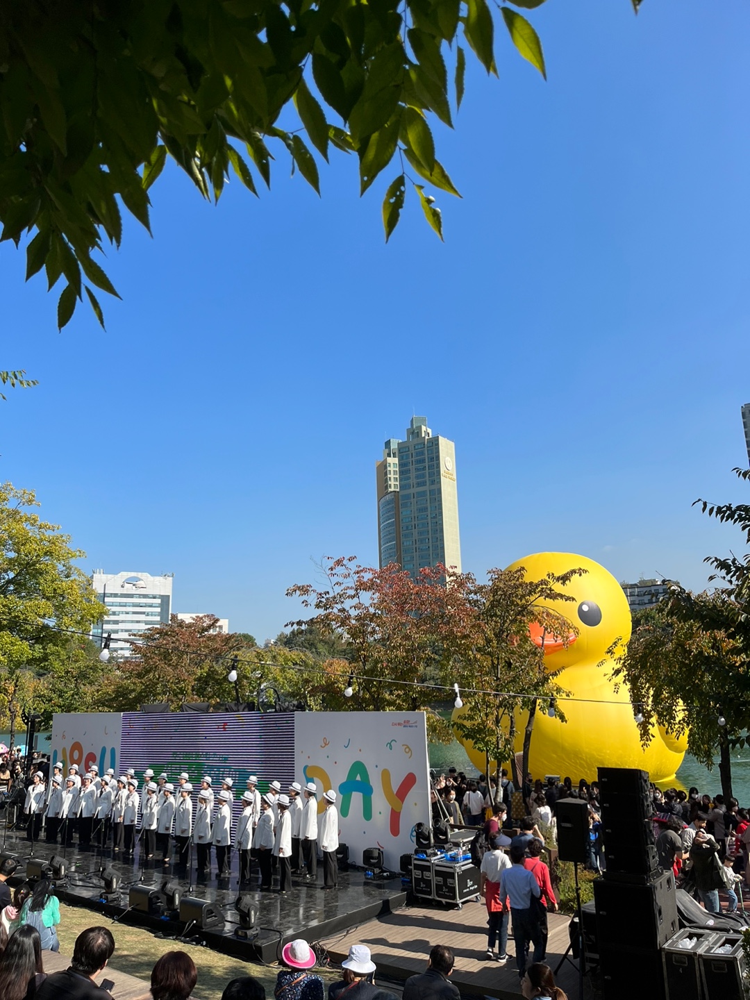 하지만, 송리단길을 가기 전에 꼭 방문을 해야 하는 곳이 있습니다. 9월부터 10월 말까지 하는 석촌호수의 러버덕 전시를 구경 갔습니다. 정말로 거대한 생명체가 호수의 한 중앙에 있는 모습이 재밌습니다.