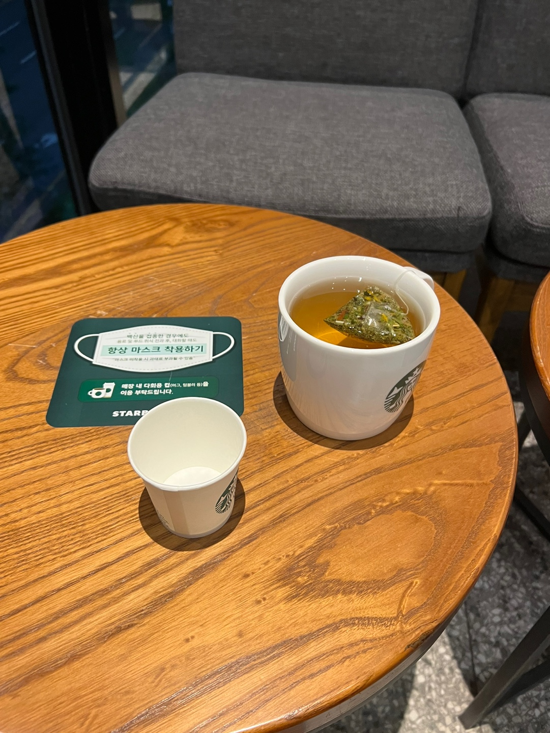 그리고 대표적인 스타벅스의 디카페인 음료인 캐모마일차입니다. 항상 살큼한 맛과 차의 꽃내음에 자주 시켜먹던 차입니다.