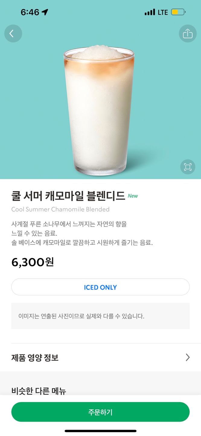 저는 쿨서머 캐모마일 블렌드를 주문했습니다. 약간 소나무 맛이 나서 신기했습니다.