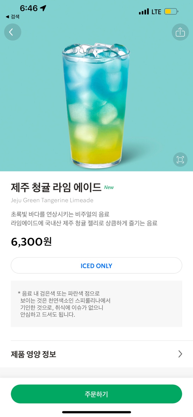 오빠는 상큼한 음료를 먹고 싶다고 하여 청귤 라임에이드를 주문했습니다.
