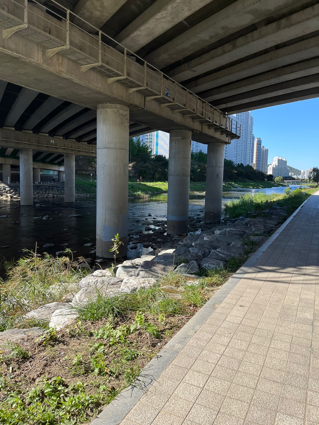 바로 여기가 안양천입니다. 자전거도로가 깔려있어서 자전거를 타는 사람들이 꽤 많이 보였습니다.