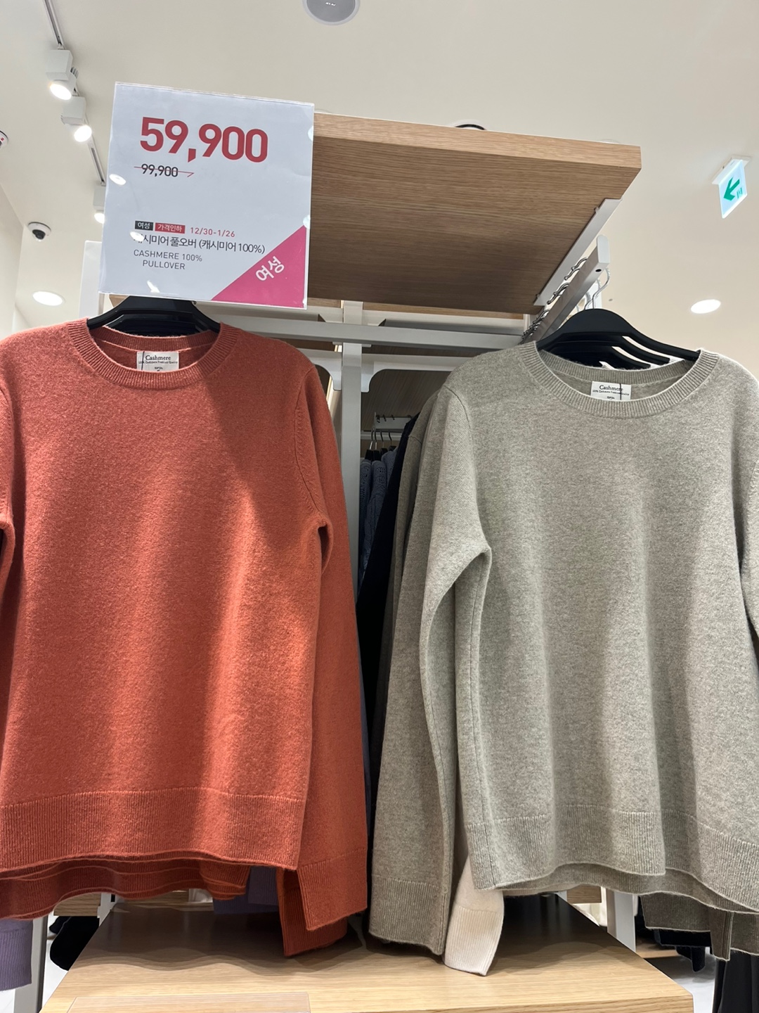 캐시미어 백프로 니트도 옆의 유니클로와 비교해서 질이 뒤지지 않는데 저렴하기까지 해서 좋았습니다.