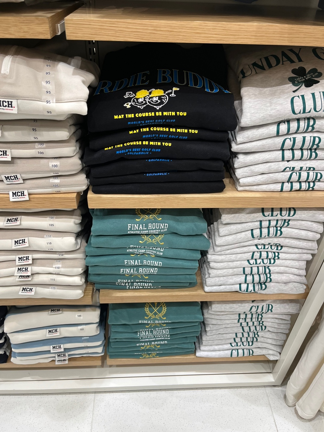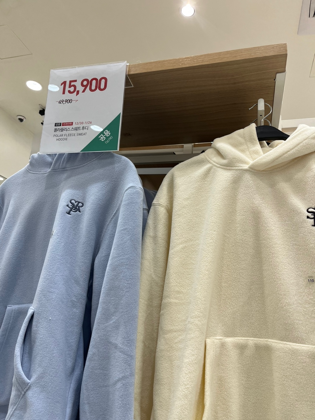 스웨트셔츠 같은 옷들이 정말 디자인이 다양하고 따뜻하고 부들부들해 보였습니다.