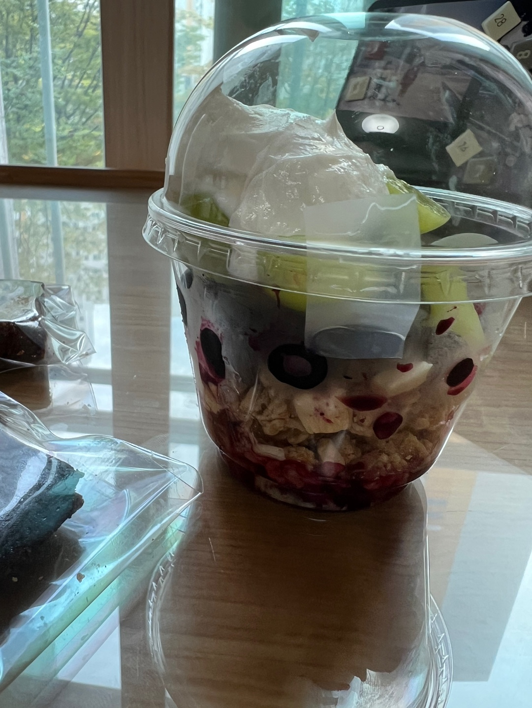 청포 조 블루베리 그레놀라 등 맛나고 건강한 것들이 가득 들어있습니다. 그리고 브라우니는 제가 추가해보았습니다.
