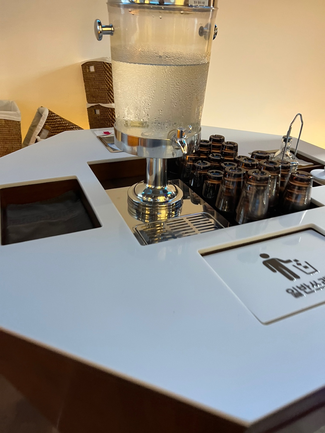 위치를 찾기가 조금 어려울 수 있는데 지하 1층에 유니클로 쪽과 연결이 되어있습니다. 예전에는 무지 매장과 연결이 되어있었는데 지금 잠실에 무지 매장이 이사를 가서 찾기가 더 어려워졌습니다. 여기는 마치 미래 세계의 인테리어를 추구하는 카페 같습니다.