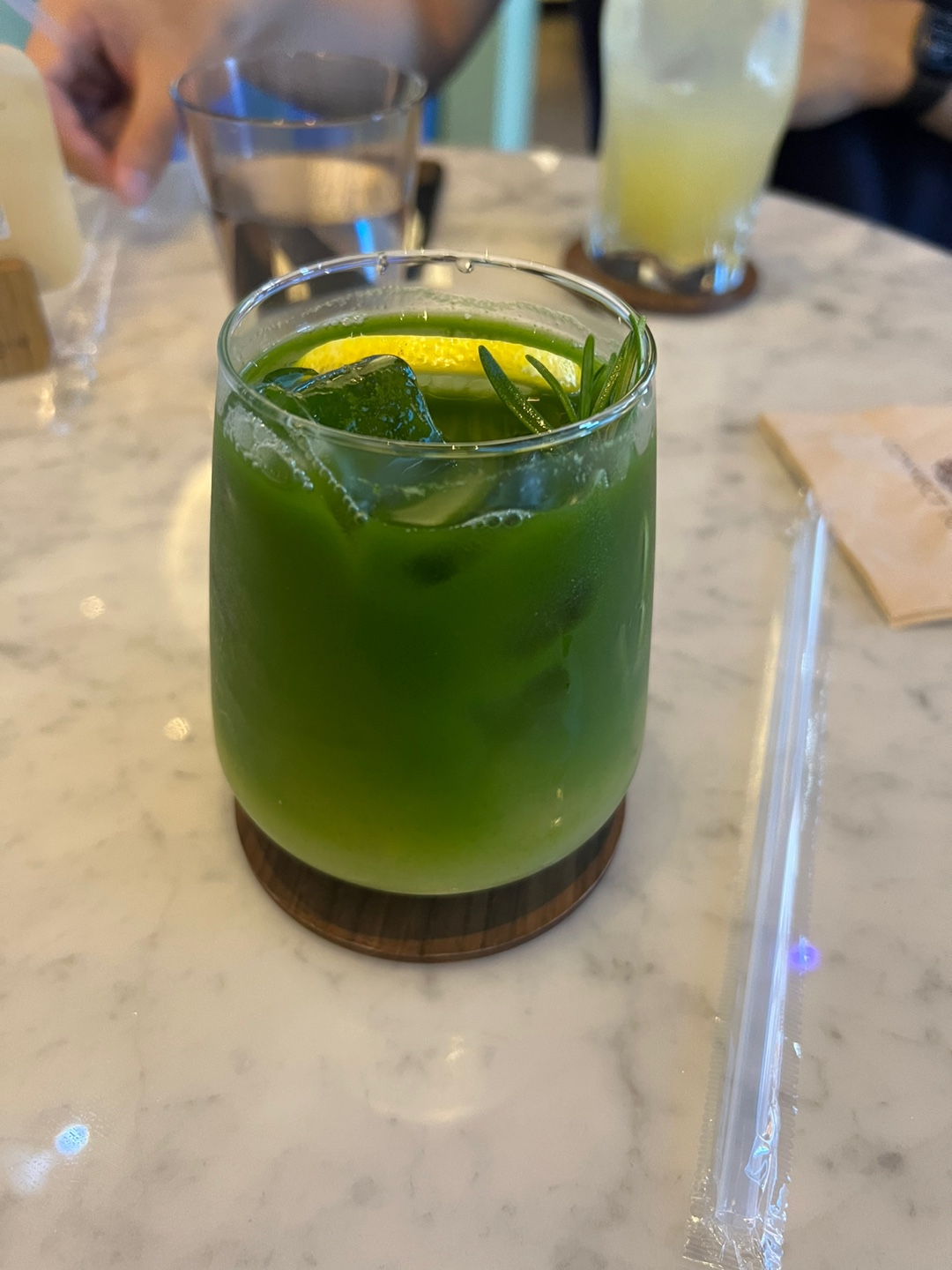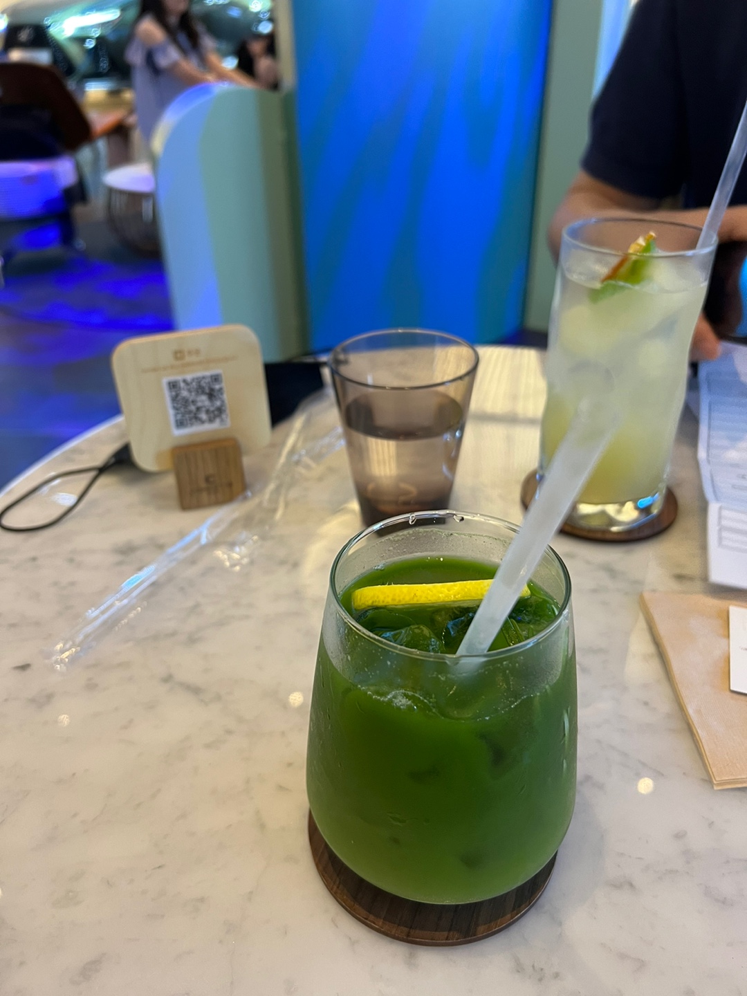 저는 케일 애플주스를 주문하고 오빠는 애플아이스볼을 주문했습니다.