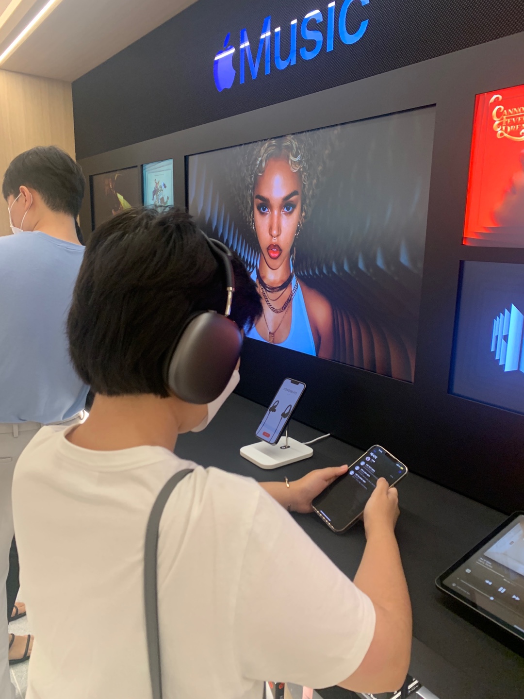 이번에 애플에서 새로 나온 헤드셋을 체험할 수 있는 공간이 있었습니다. 역시 애플은 애플이었습니다. 노이스 캔슬링이 돼서 그런지 음질도 최고로 좋고 너무 좋았습니다.