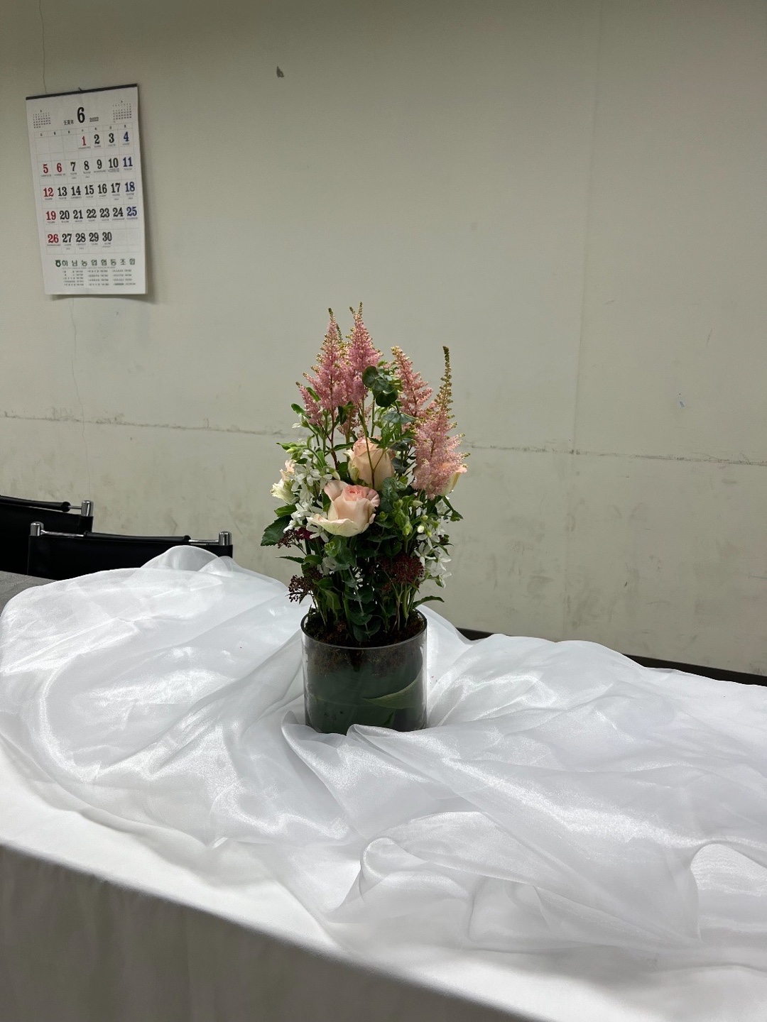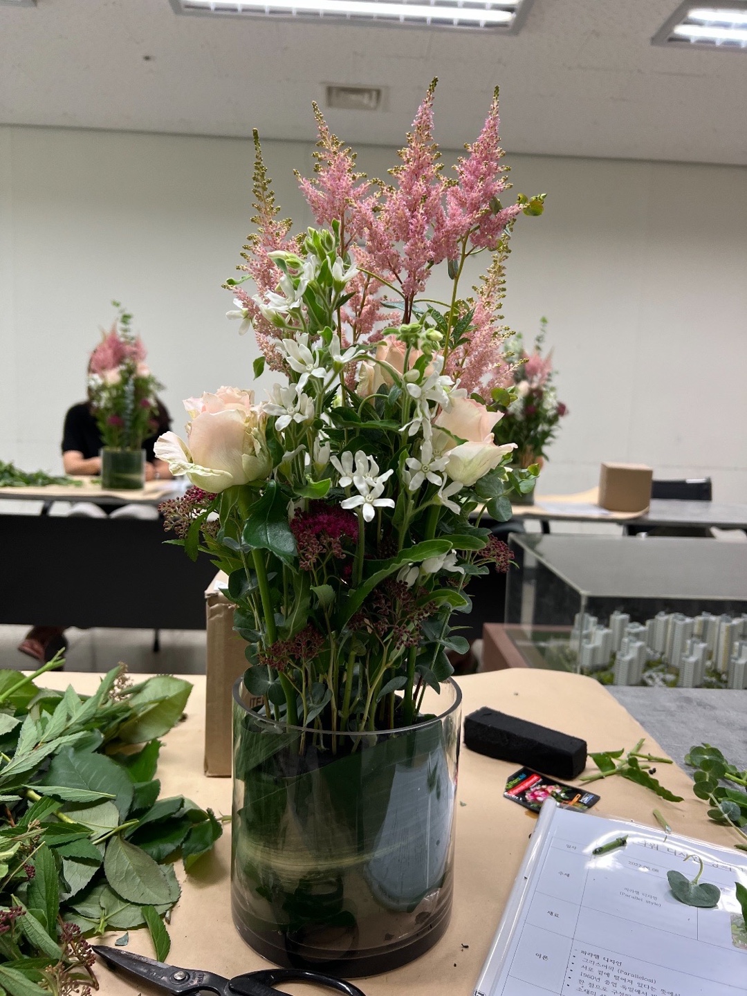 근데 좋은 기회가 생겨서 배우게 되었습니다. 오늘은 일자의 형태로 꽃을 꽂아넣는 것을 배웠습니다.