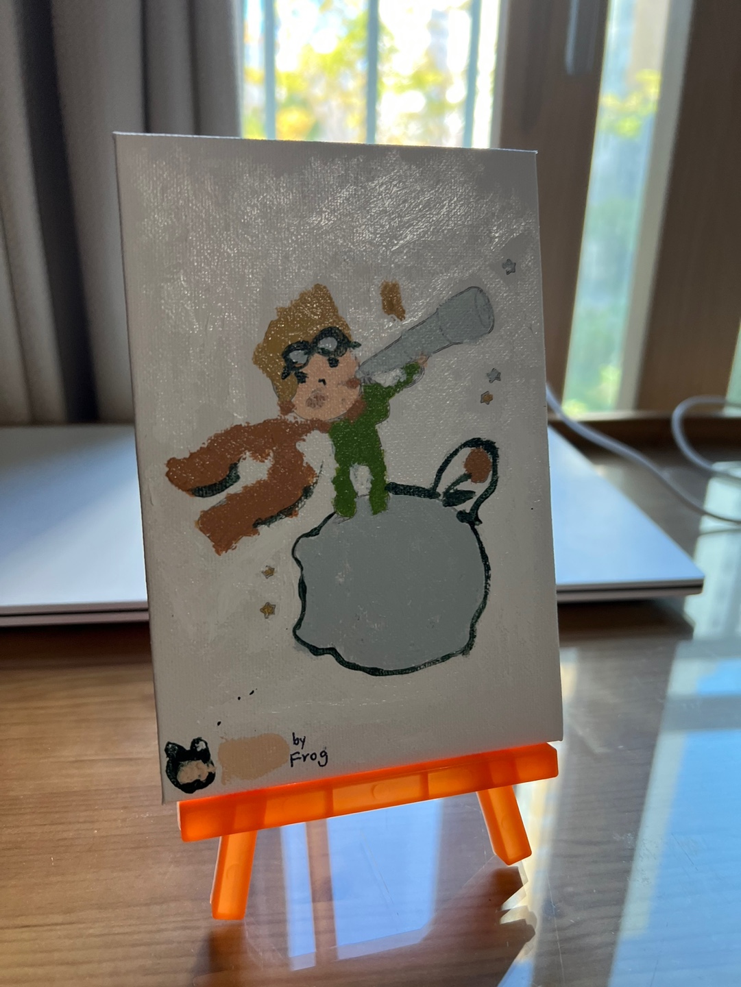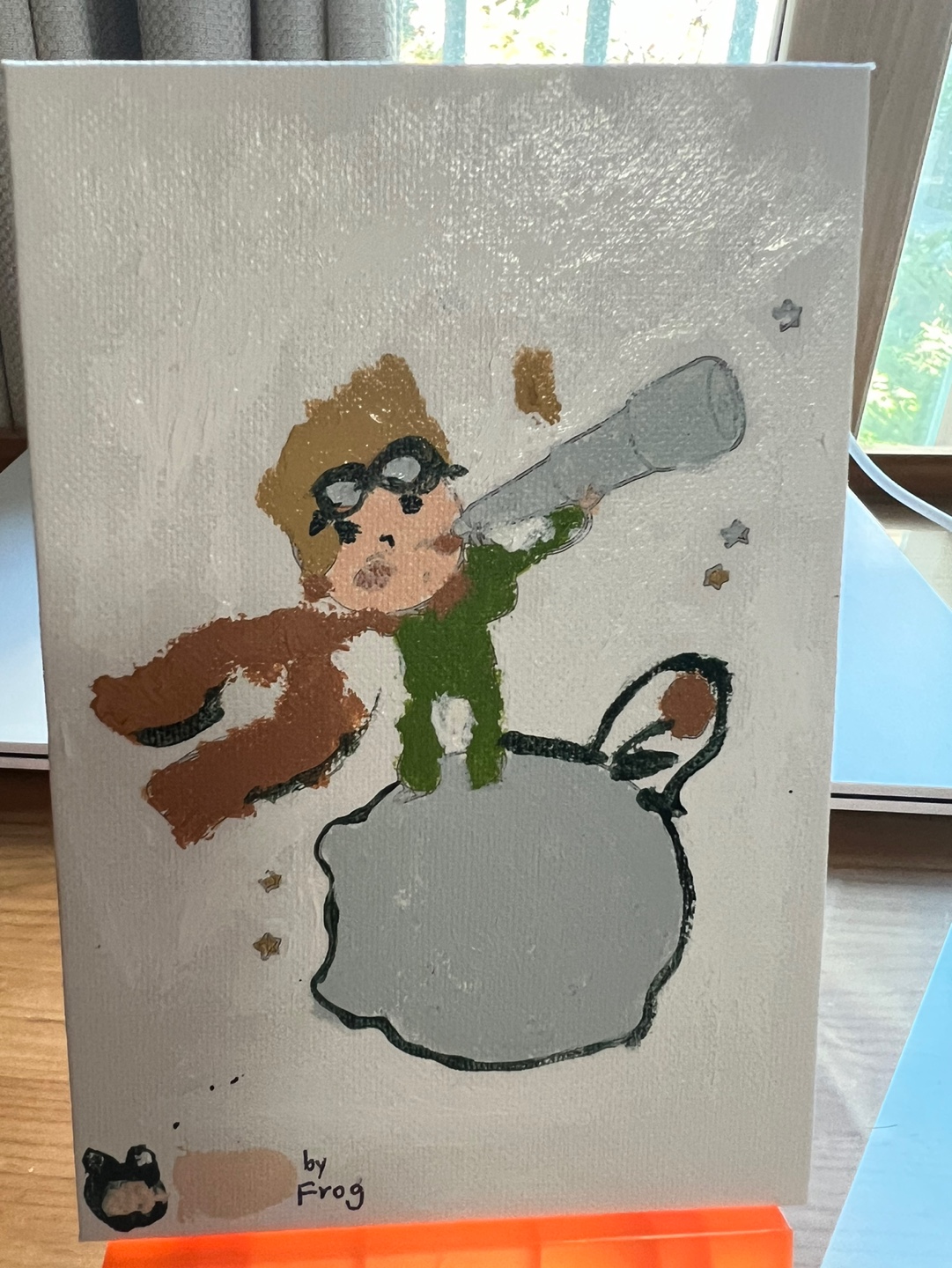 저는 일부러 작은 그림을 골랐습니다. 처음부터 너무 큰 것을 도전하면 중간에 지루할 수도 있고 빨리 성취감을 맛보고 싶기에 손바닥만 한 사이즈를 선택했습니다. 자신의 별에서 다른 행성을 바라보는 어린 왕자를 선택했습니다.