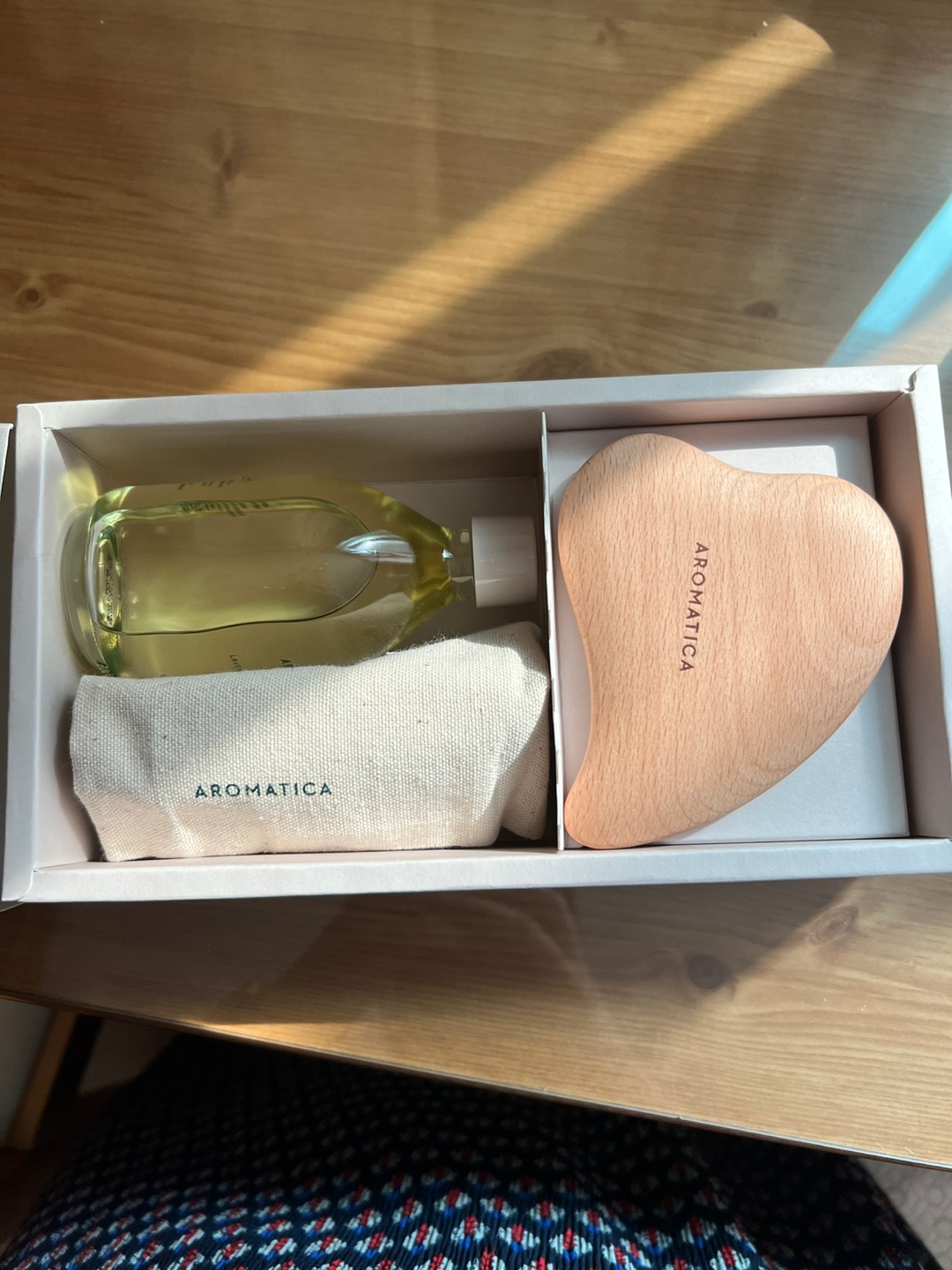 대학교 친구에게 요즘 유행하는 우드 괄사와 보디 오일을 선물 받았습니다.