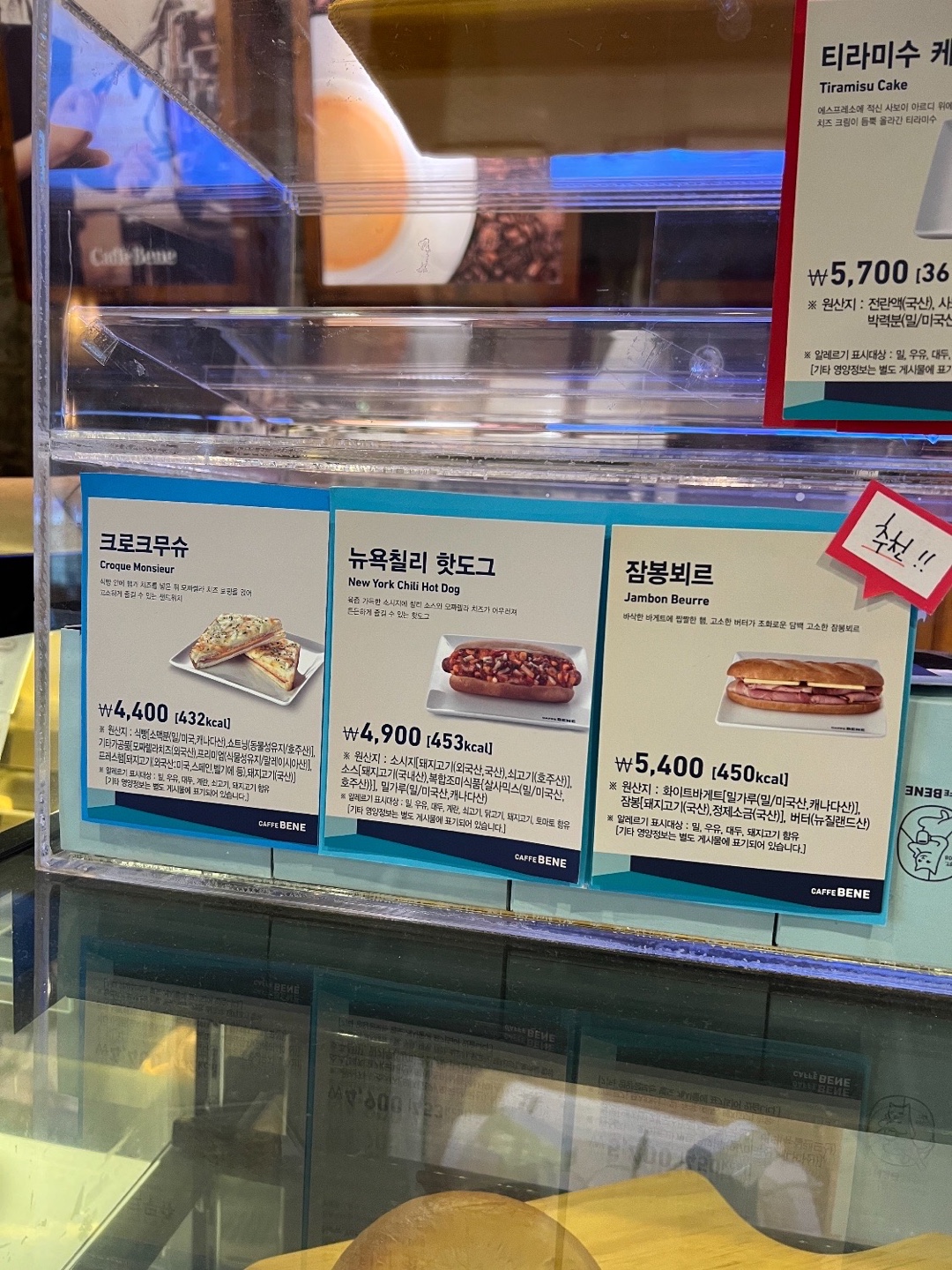 크로크 무슈, 핫도그, 잠봉 뵈르까지 판매해서 식사를 하러 와도 문제가 없을 것으로 보였습니다.
