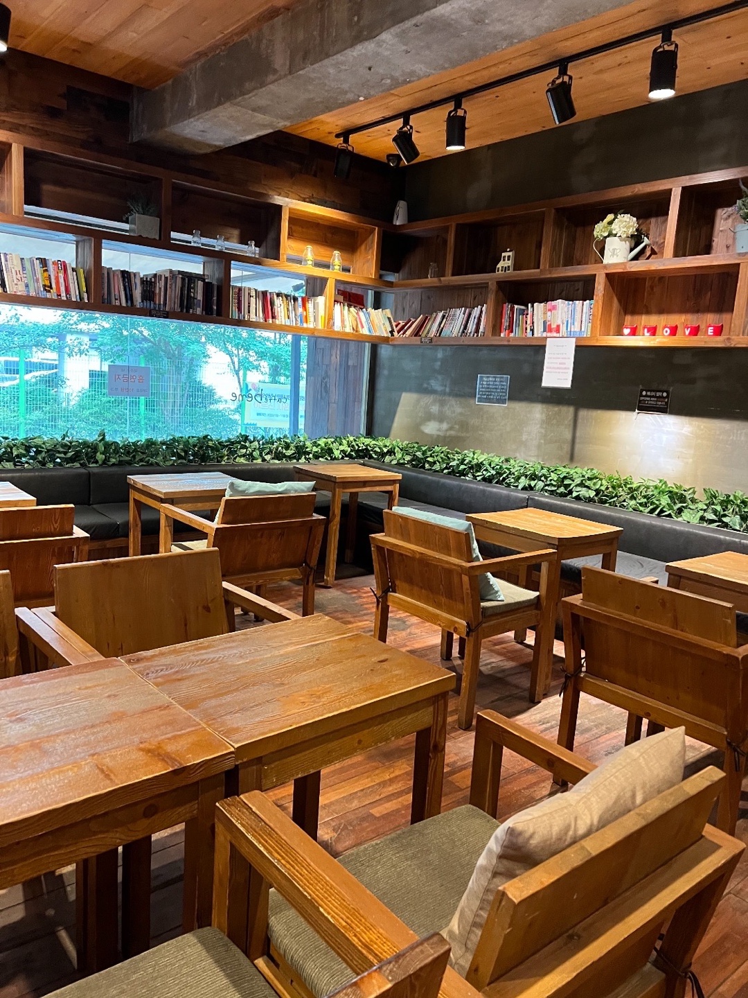 인테리어는 이렇습니다. 좌석은 매우 많아서 자유롭게 앉을 수 있고 단체석도 있어서 동네에서 자유롭게 볼 수 있는 장소 같습니다.