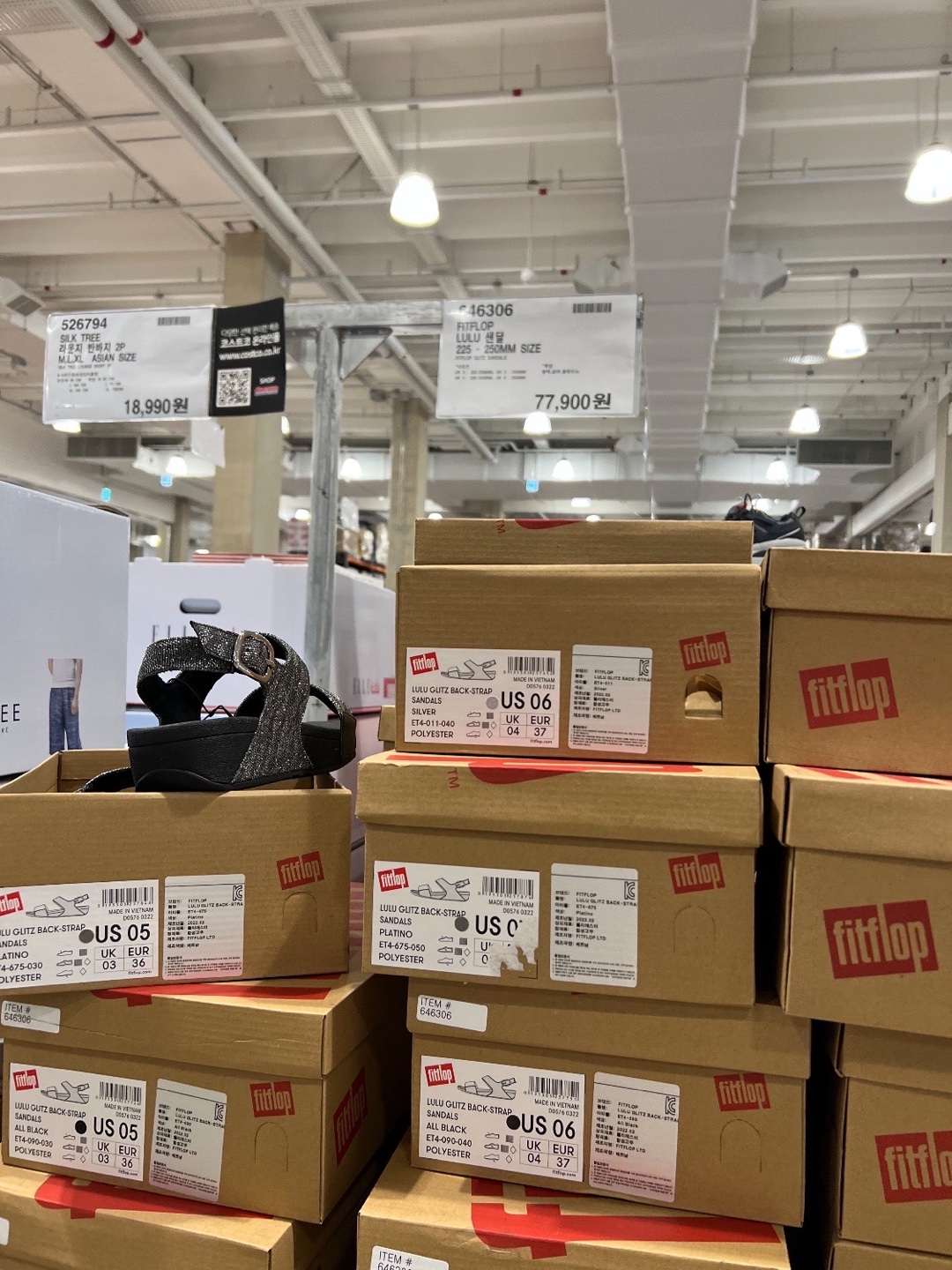 의류는 나이키, 디즈니 공주 잠옷부터 신발은 락포트, 바이네르, 핏플랍 등 백화점에서 구매하면 20만 원이 훌쩍 넘는 제품들이 여기서는 10만 원도 안 하는 가격으로 판매되는 것을 볼 수 있었습니다. 물론 종류가 많지는 않지만 기능성을 생각한다면 코스트코에서 저렴하게 건질 수 있는 것 같습니다. 그리고 테팔, 코렐 접시 등 저렴하게 판매해서 추천합니다.