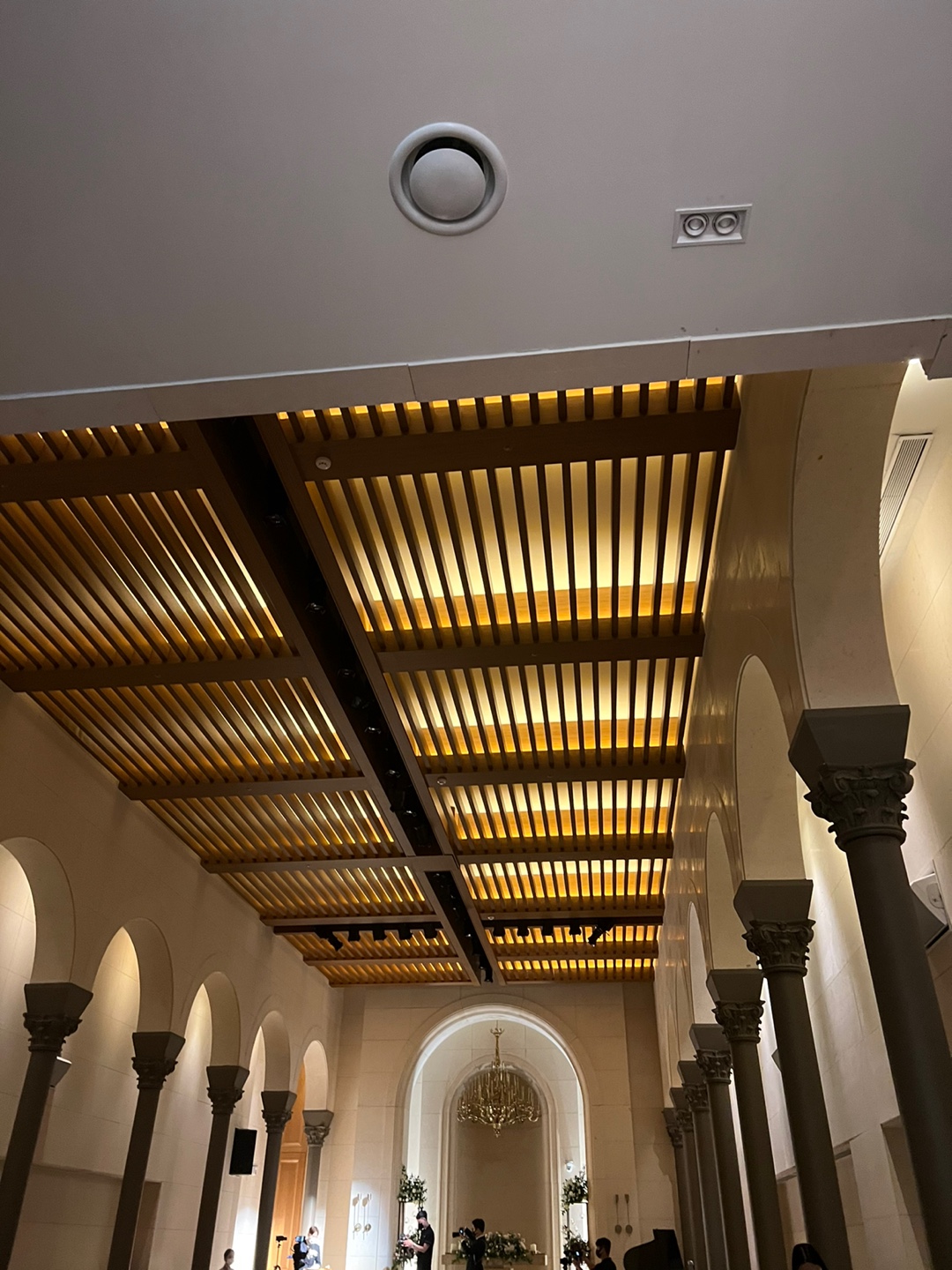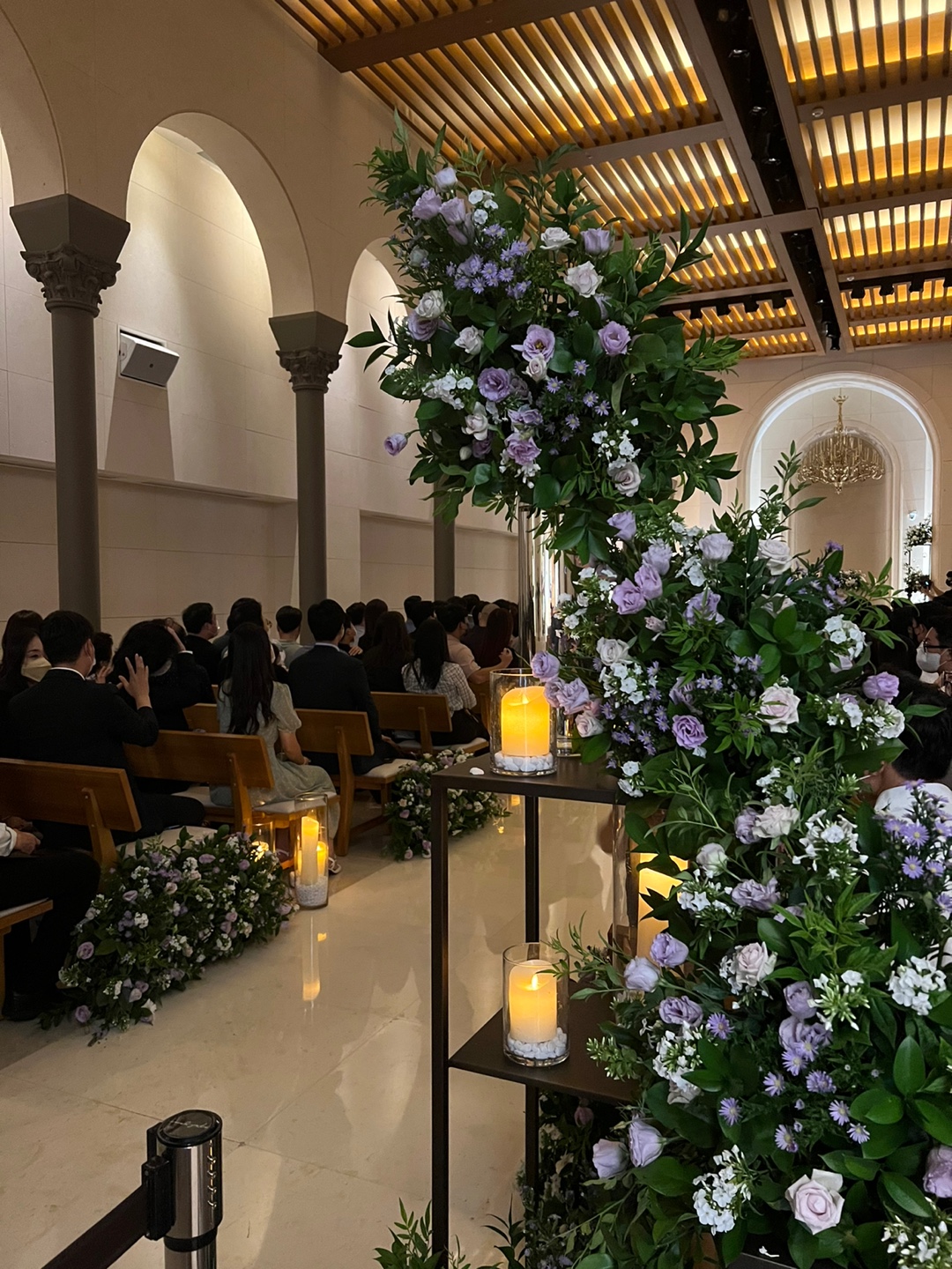 홀은 역시 밝고 경건한 분위기입니다. 개인적으로 하객 입장에서 이런 분위기의 결혼식에 참석하면 마음속으로 더 축하하게 되는 것 같습니다. 신부의 얼굴이 가깝게 지나가서 그럴까요.