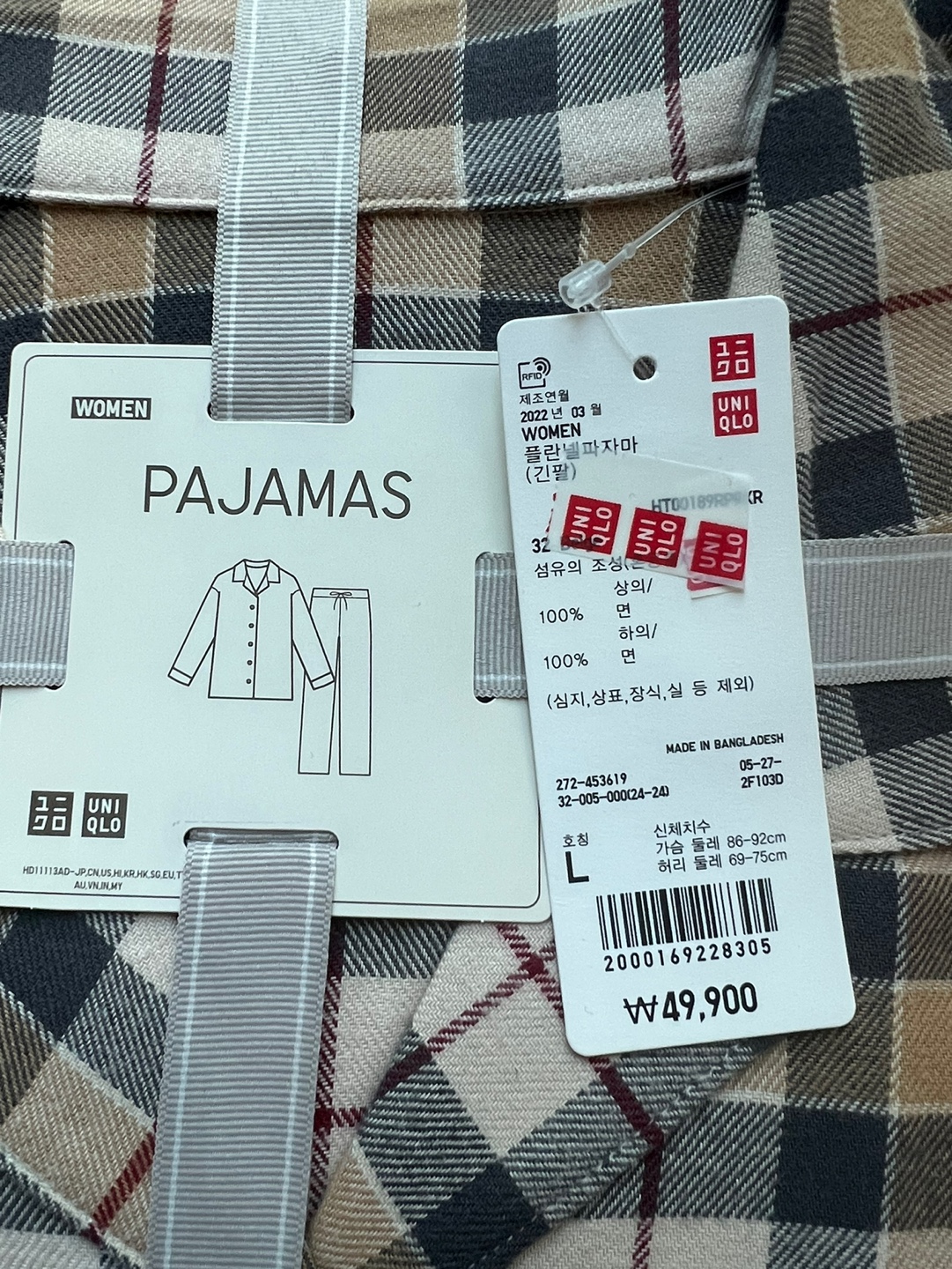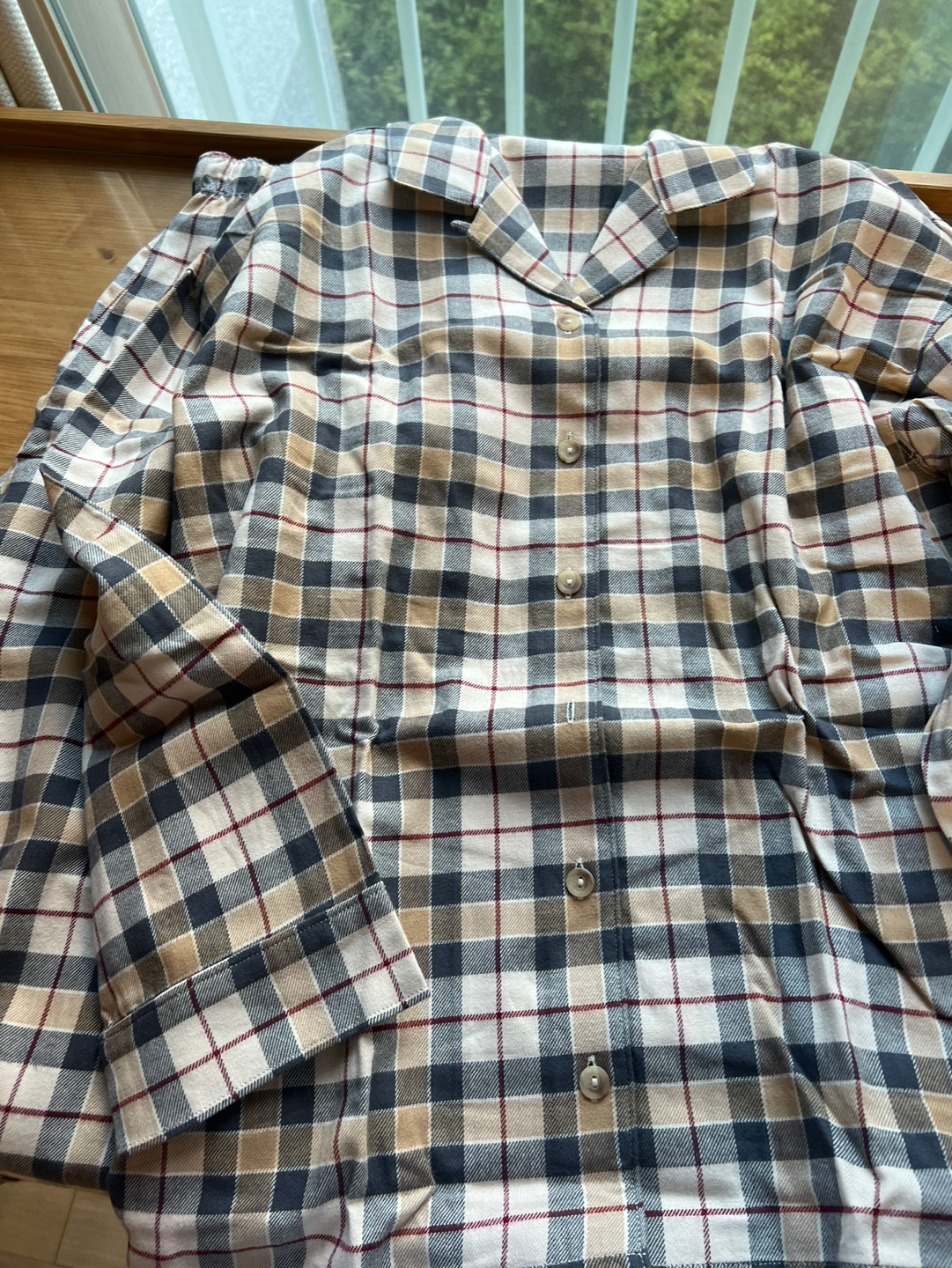 전에 유니클로에서 잠옷을 구입했을때 질이 좋아서 이번에도 구입을 하게 되었습니다. 100프로 면인 잠옷을 구입했습니다. 여러 가지의 패턴이 많지만 밝고 체크로 되어있는 잠옷을 구입했습니다.