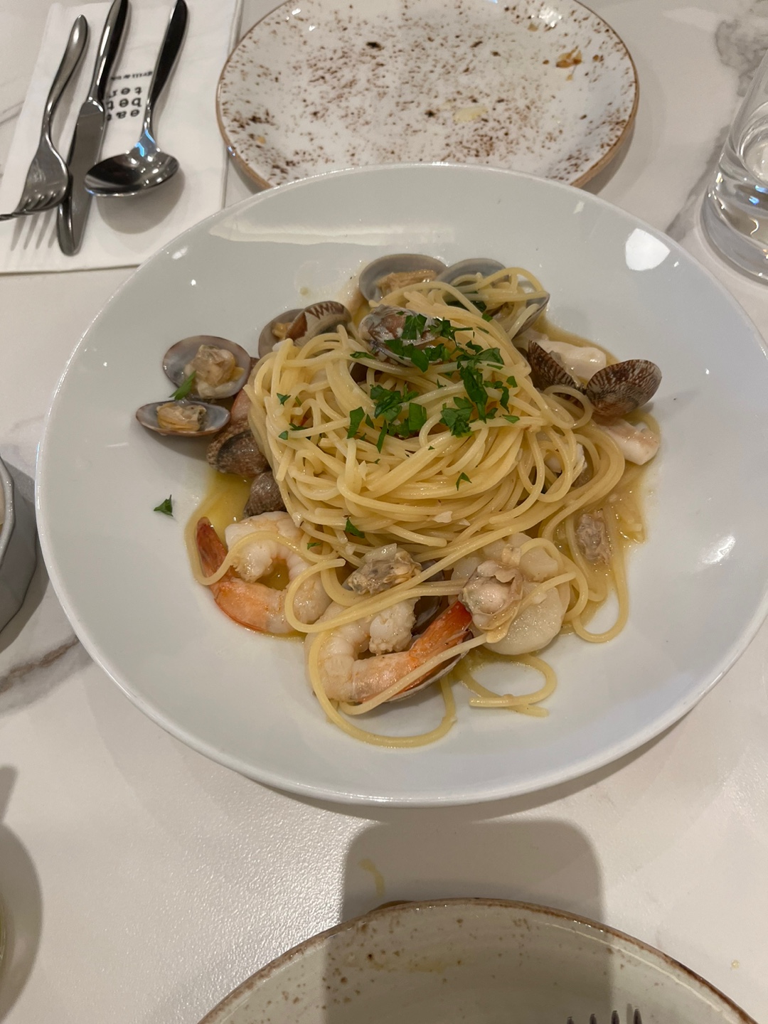 오빠와 제가 좋아하는 알리오 올리오 파스타입니다. 고소하고 해산물이 싱싱해서 입이 즐겁습니다.