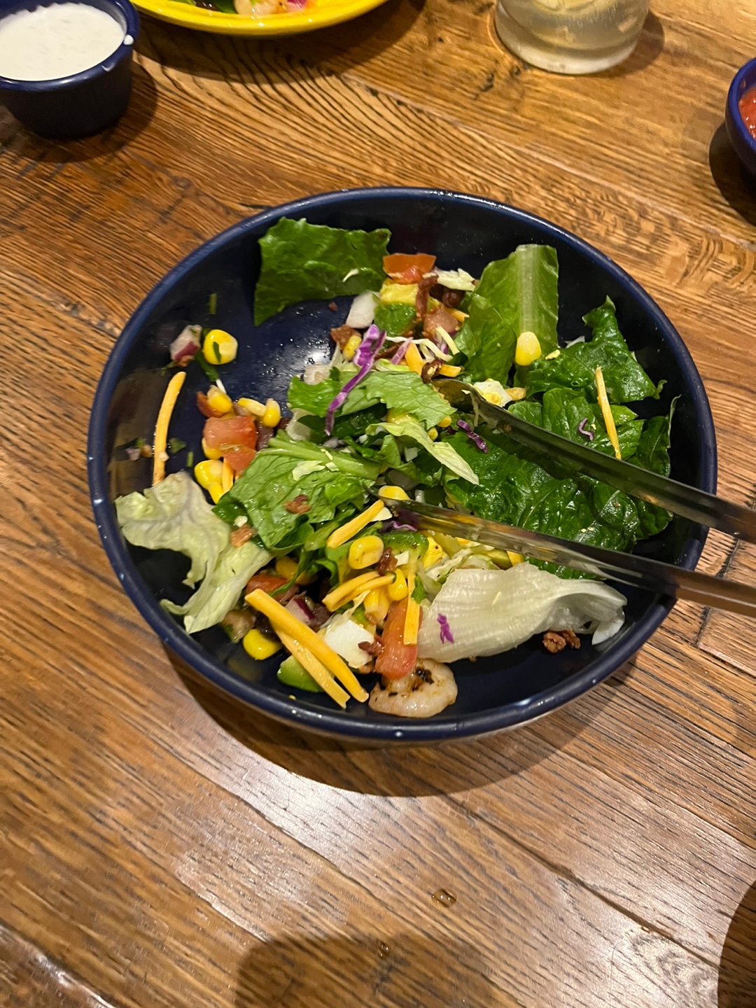 그리고 샐러드도 주문을 했습니다. 온더보더는 은근 양이 많아서 생각하는 것보다 적게 시키는 것을 추천합니다.