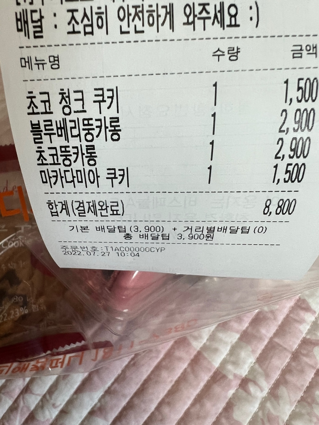 딸기마카롱, 초코마카롱, 그리고 쿠키를 종류대로 주문했습니다.