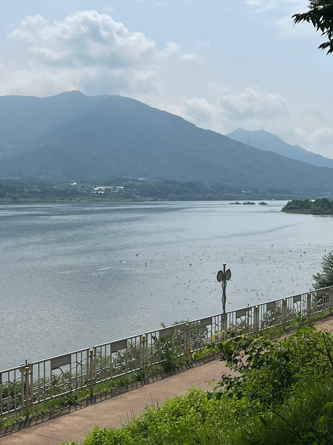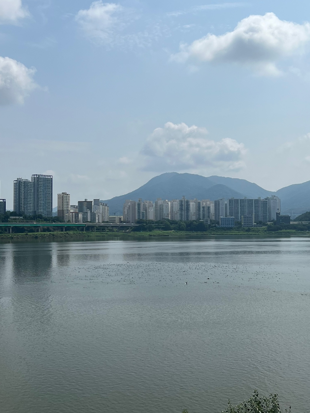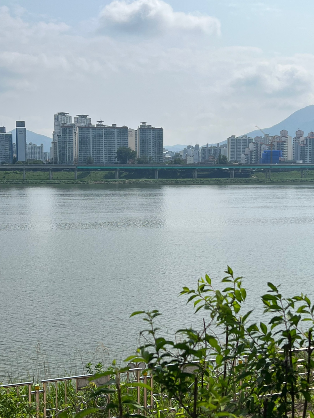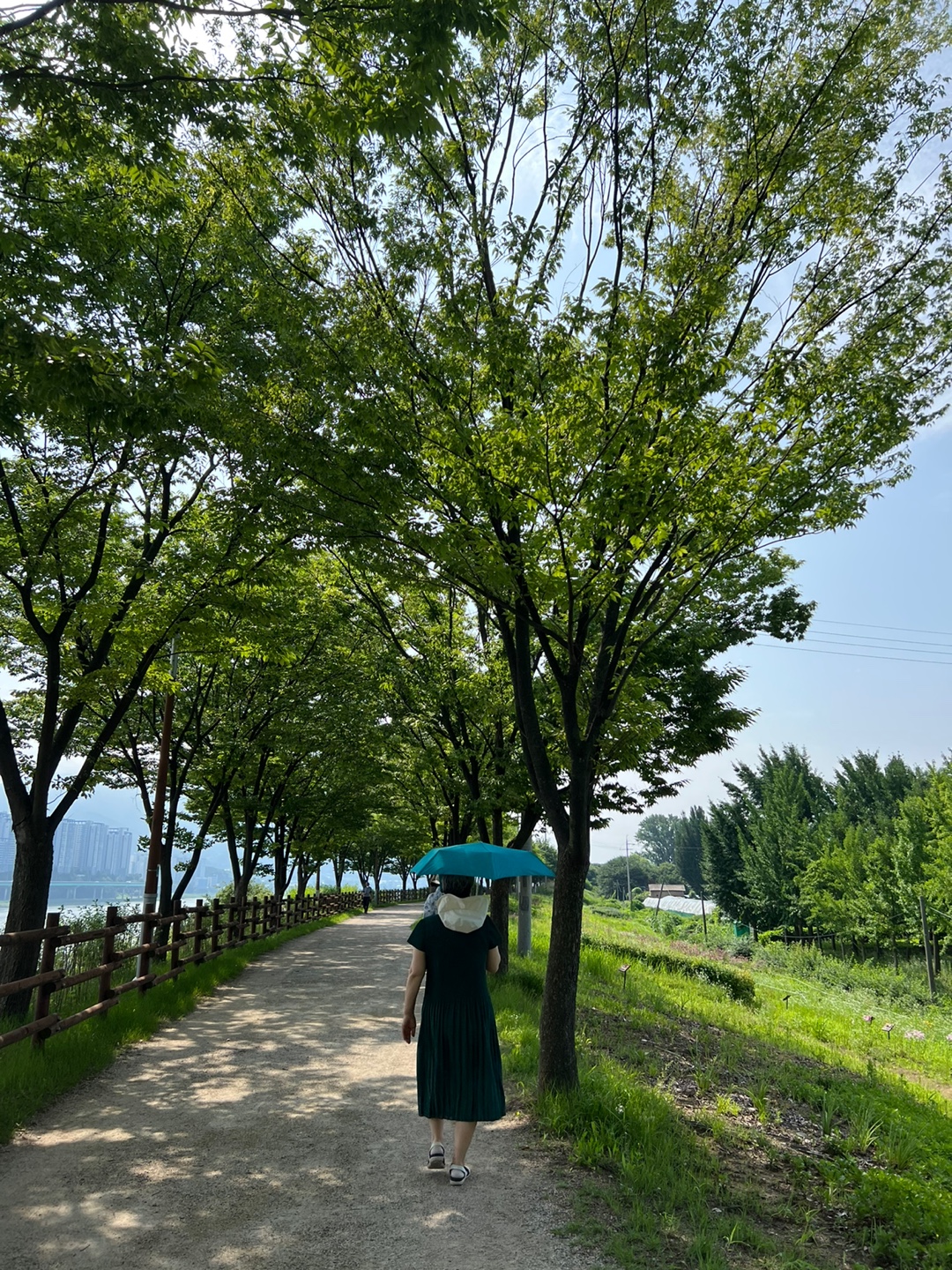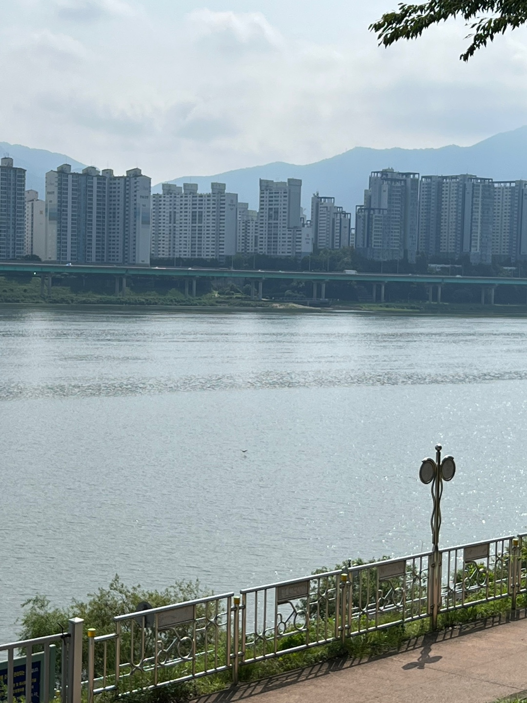 한강유역을 엄마와 산책했습니다. 강 위에 반짝반짝 거리는 것은 윤슬이라고 부른다고 합니다.