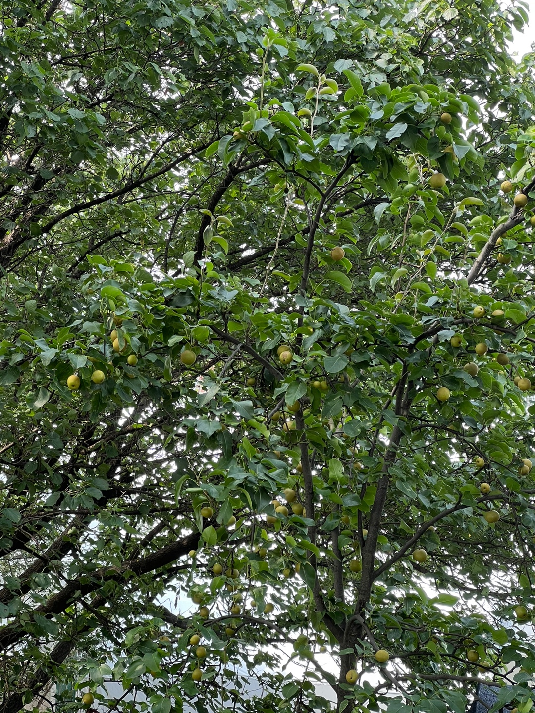 이것은 배나무라고 합니다. 저는 사과 아니면 자두라고 했더니 엄마가 배나무라고 했습니다.