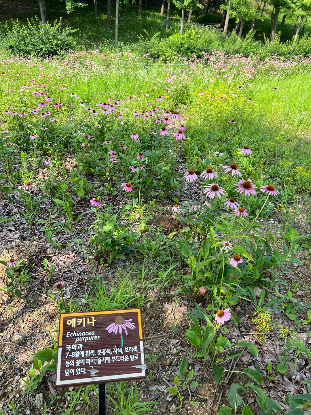 이 산책길을 산책하다 보면 다양한 꽃들을 만나게 되는데 에키 나라는 국화꽃의 일종인 꽃입니다.