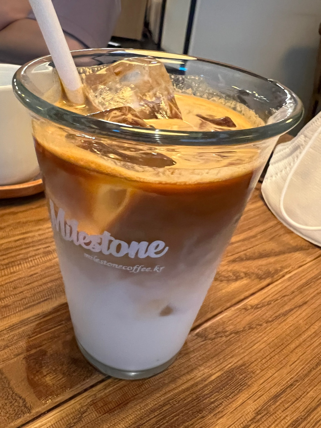 바닐라라테의 영롱한 색을 보면 왜 이렇게 기분이 좋은지 모르겠습니다.